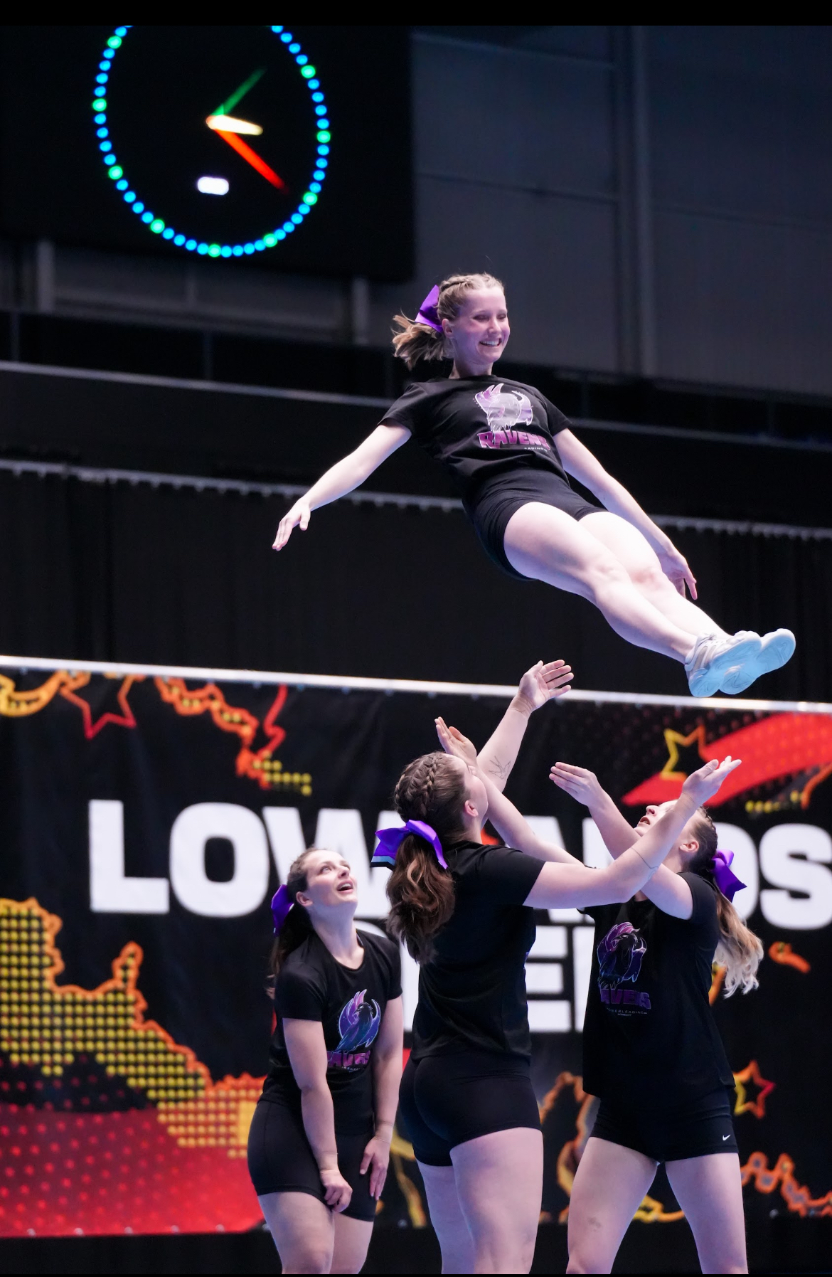 We are a coed Level 3 competitive cheerleading team based in Utrecht. Our athletes push limits through powerful routines that combine stunting, tumbling, and performance, all built on trust and teamwork. Last season, we proudly competed at Lowlands and Nationals, bringing home three medals!